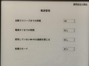 電源管理の設定において、【電源オフまでの時間】と【Wifi接続を閉じる】をオフにすることによって、スリープ解除時にすぐにお使いいただけます。