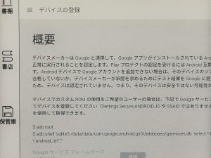 端末固有のIDをグーグルに登録します。これによりGoogle Playが使えるようになります。ただ、登録されて使えるようになるまでには、1~2時間ほど時間がかかる場合があります。その際は再起動するなどしてもう一度ご確認ください。